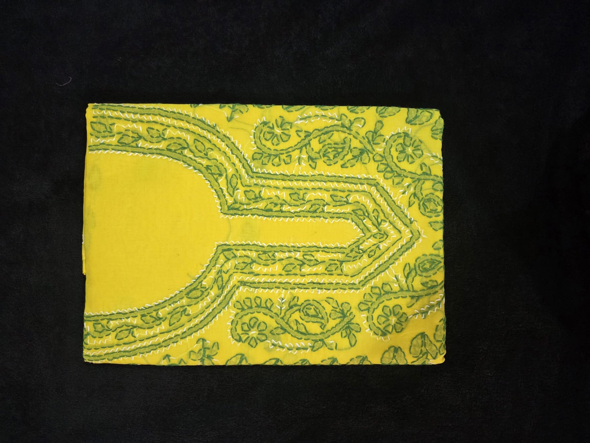 Elevate your wardrobe with our exquisite Chikankari Cotton Dress Materials, featuring a sophisticated V-neck design. Crafted from premium cotton, these materials showcase the timeless artistry of traditional Chikankari embroidery—a centuries-old technique known for its delicate, intricate threadwork. The breathable cotton fabric ensures comfort in warm climates, while the elegant V-neck cut offers a flattering silhouette for various body types. Perfect for creating custom garments or ready-to-wear pieces, these dress materials combine heritage craftsmanship with contemporary style. Ideal for festive occasions, casual wear, or gifting to someone who appreciates authentic Indian textiles.