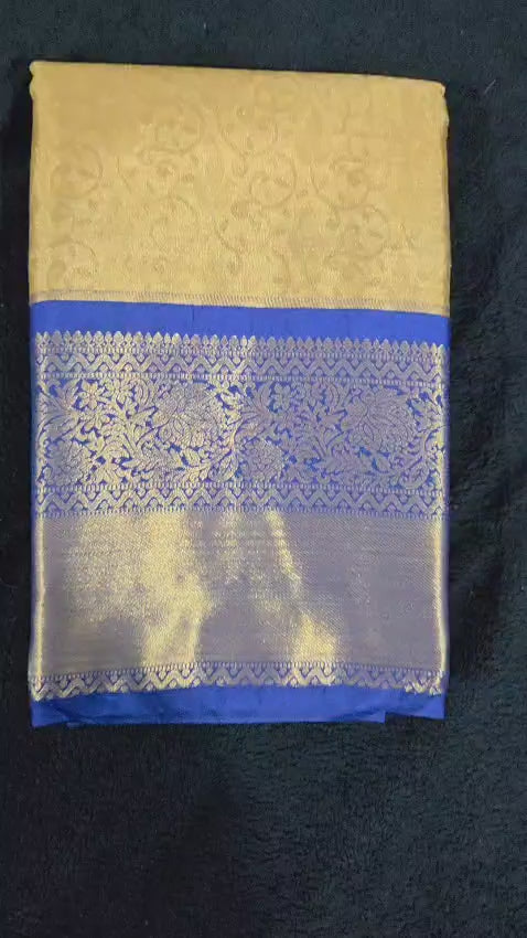 Dark Blue Kanchi Korvai Tissue Silk Saree