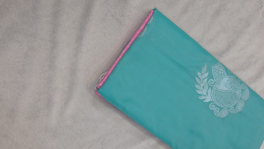 Experience timeless elegance with this Kanchipuram soft silk saree, featuring delicate butti patterns that enhance its graceful appeal. Designed without a border to maintain a minimalist charm, it is complemented by a striking contrast pallu that adds a refined touch. Perfect for special occasions, this saree blends traditional craftsmanship with subtle sophistication for a look that is effortlessly graceful.