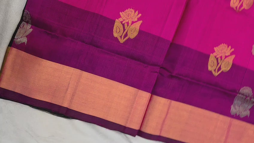 Magenta Color Uppada Pattu Saree with Flower Buta