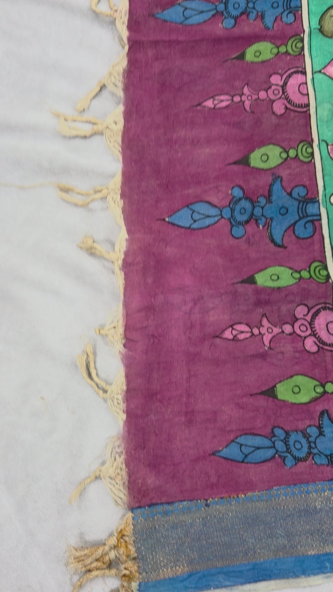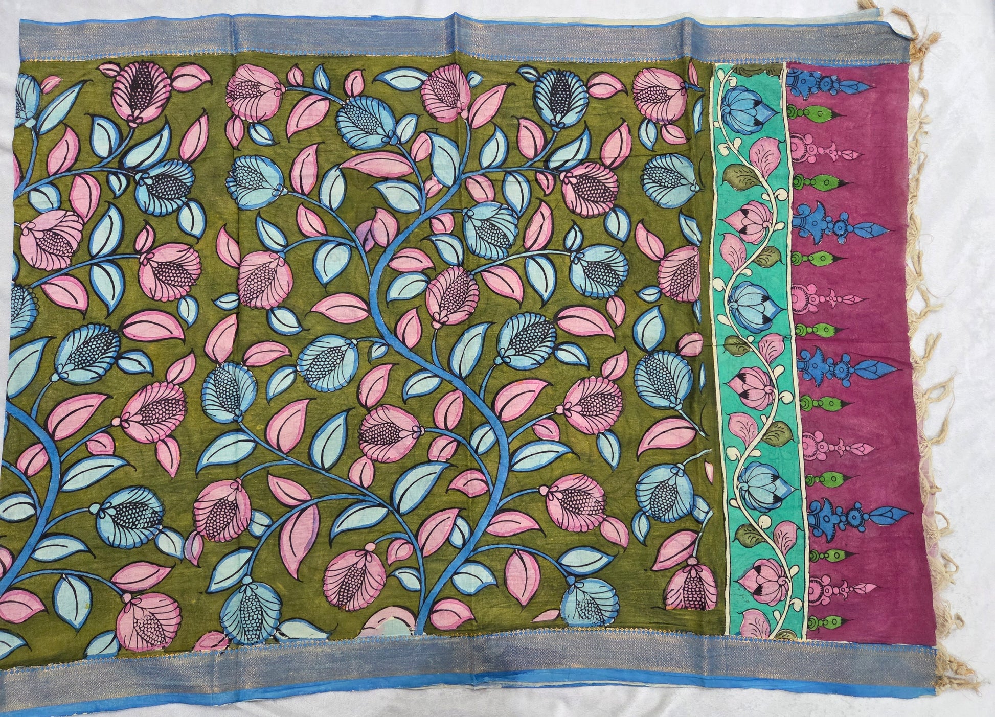 Crafted from soft cotton, this Olive Green Pen Kalamkaari Duppatta showcases intricate traditional Kalamkaari patterns in a soothing olive green hue. Ideal for elevating any ethnic outfit, its breathable fabric ensures comfort while the detailed hand-printed designs add a touch of artisanal elegance, perfect for both casual and formal occasions.